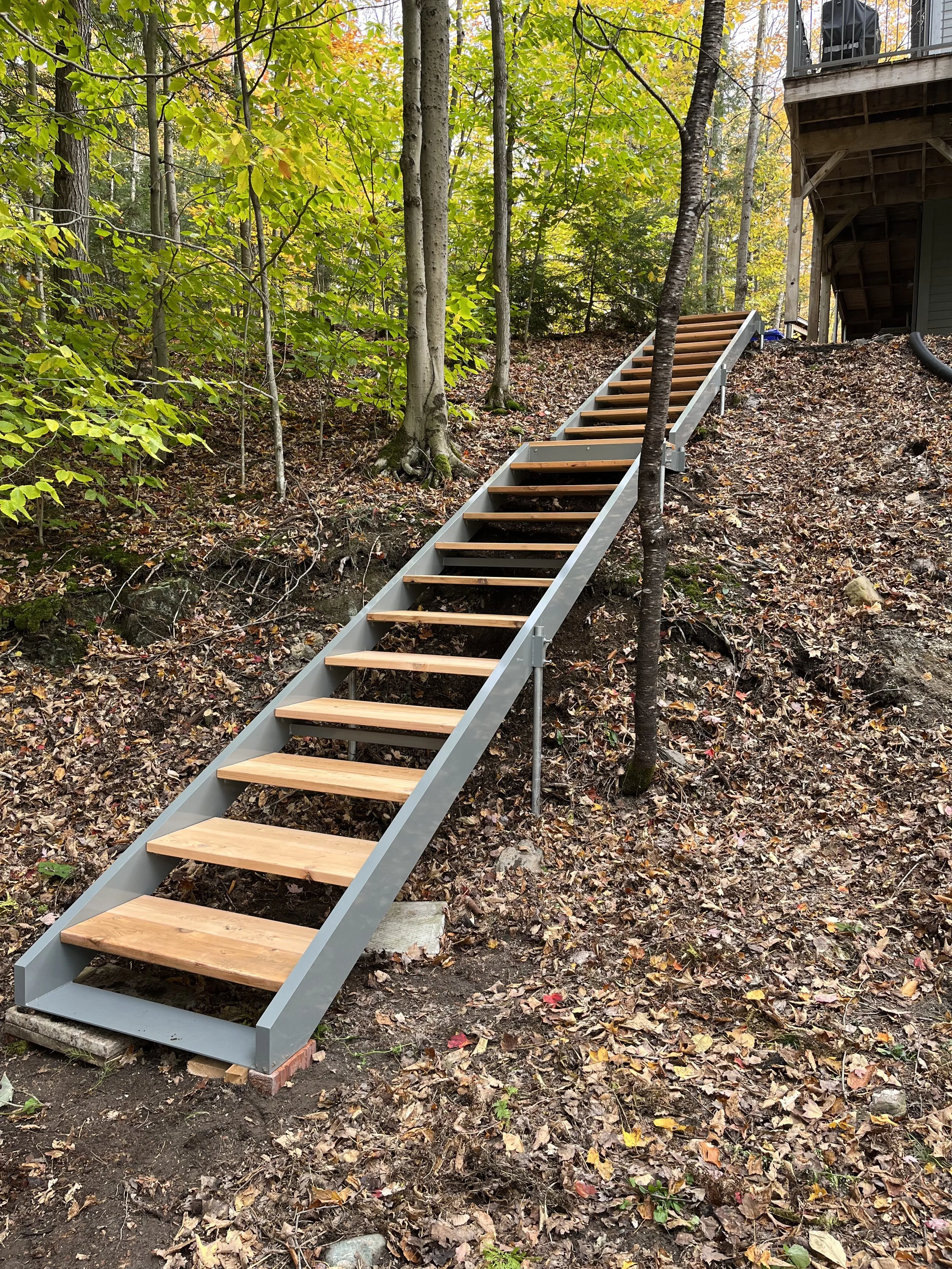 Avec plus de 25 ans d’expérience, nous concevons et installons des escaliers extérieurs alliant solidité, élégance et performance. Que ce soit pour un accès à l’eau ou un terrain accidenté, chaque projet est soigneusement pensé pour s’intégrer harmonieusement à votre environnement.